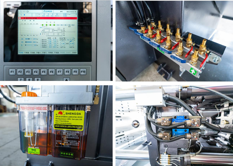采用專用控制系統(tǒng),控制速度大大提高,高像素(800*480)大容量的TFT真彩顯示屏,顯示內(nèi)容更 加豐富,使工藝調(diào)整更直觀、操作更簡單、功能更 加完善。并可模擬機器動作。電腦系統(tǒng)彩色顯示屏(觸模式可選)模具成型工藝數(shù)據(jù)庫,100項以上,多 國語言文字切換,1/0 檢測顯示,成型數(shù)據(jù)記錄及可 視化圖標(biāo)分析,設(shè)備保養(yǎng)提醒檢測,模內(nèi)檢測功能(可 選裝置),高穩(wěn)定國際名牌電器零件,各動作工況實 時監(jiān)視功能,生產(chǎn)資料檢測功能,故障報警顯示功能, 注射壓力轉(zhuǎn)保壓功能,三色報警,電機過載保護, 前后門緊急停止按鈕,變頻節(jié)能,機械手接口(可選歐規(guī)),加熱固態(tài)繼電器控制,計算機網(wǎng)絡(luò)集中控 制系統(tǒng)。